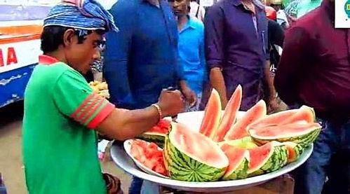 周围的人纷纷围过来,好奇地询问:“真的免费吗?”“怎么吃的?”“有没有什么条件?”那个人见状,得意地笑了笑,说:“当然免费,只要你们按照我说的做,就能吃到这美味的西瓜。”